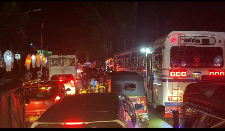 போக்குவரத்து நெரிசலால் பிரதான வீதிகளில் சுமார் 5.6 கி.மீ தூரம் வரையும் வாகனங்கள் அணிவகுத்து நீண்ட வரிசையில் தரித்து நிற்பதும் தொடர்ந்து வருகிறது.