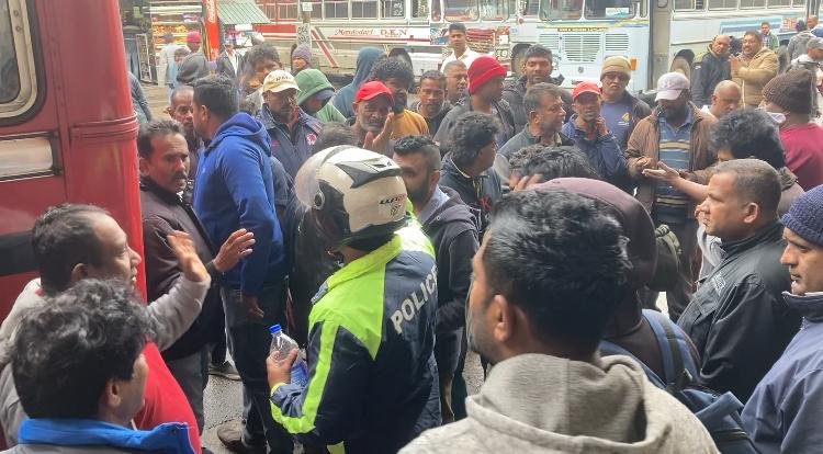 நுவரெலியா பிரதான பேருந்து தரிப்பிடத்தில் இன்று சனிக்கிழமை முதல் அமல்படுத்தப்பட்ட புதிய சட்டத்திற்கு எதிர்ப்பு தெரிவித்து பேருந்து சாரதிகளும் நடத்துனர்களும் பொலிஸாருடன் வாக்குவாதத்தின் ஈடுபட்டனர் .