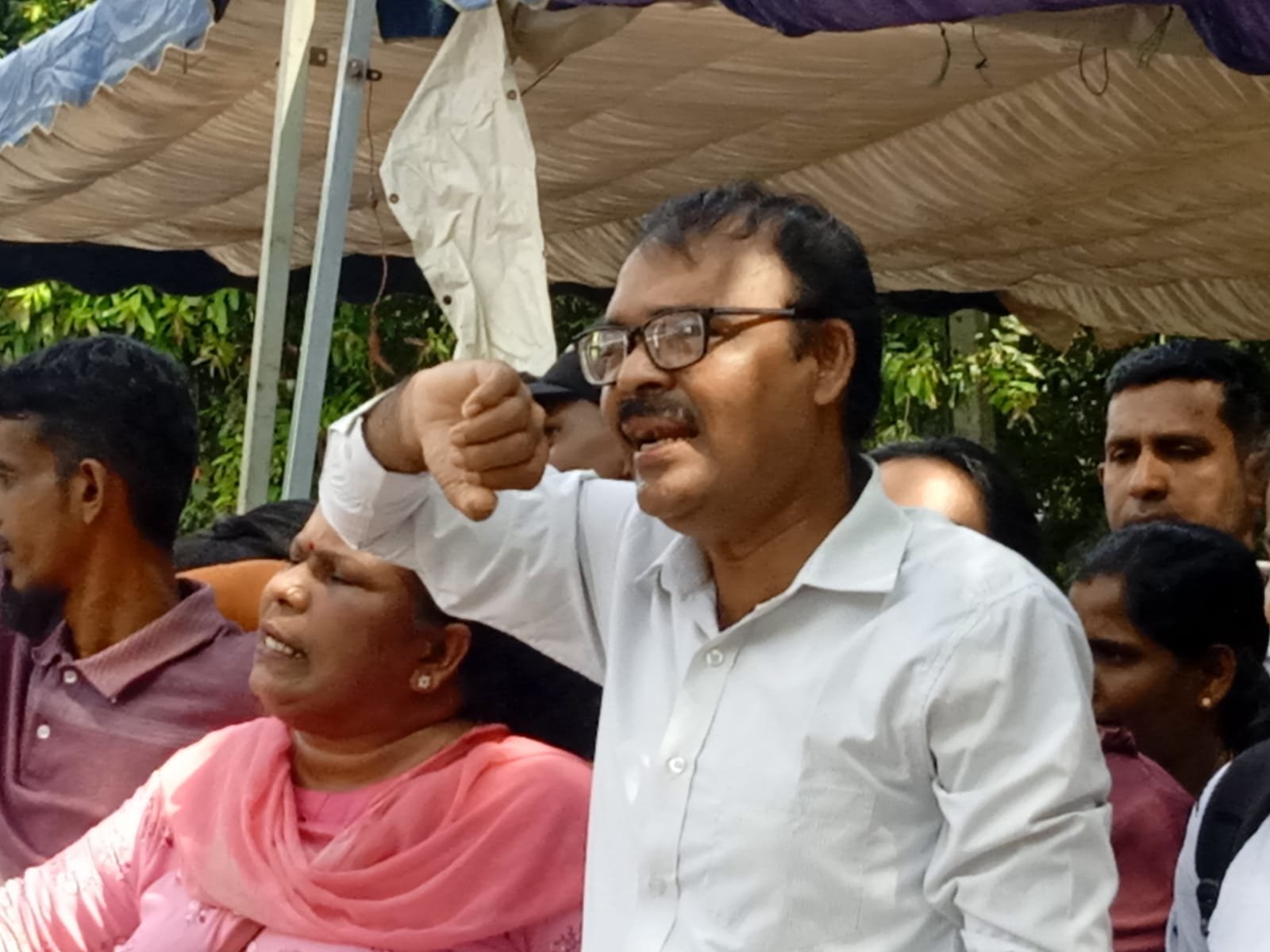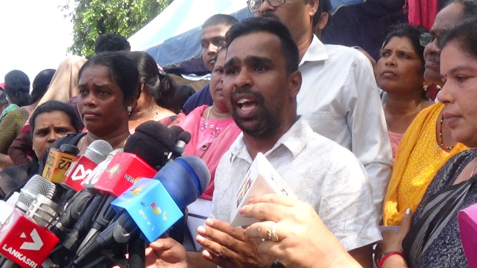 மேலும் இன்று நாங்கள் நடாத்தவிருந்த ஆர்ப்பாட்டம் தொடர்பில் ஏற்கனவே பொலிஸ் நிலையம் மற்றும் மாநகரசபையிடம் காந்தி பூங்காவை இன்று எங்களுக்க பயன்படுத்தவும் ஆர்ப்பாட்டத்தினை நடாத்தவும் அனுமதி கோரி அது கிடைத்திருந்த நிலையில் இன்று காலை தங்களுக்கு கொழும்பிலிருந்து அழைப்பு வந்ததாகவும் காலை நடைபெறவிருந்த உண்ணாவிரத போராட்டத்தை கைவிட வேண்டும் இல்லை என்றால் இதில் கலந்து கொள்ளும் அனைவர் மீதும் சட்ட நடவடிக்கை எடுக்கப்படும்” என பொலிஸாரினால் அச்சுறுத்தல் விடுக்கப்பட்டதாக அவர் தெரிவித்தார்.