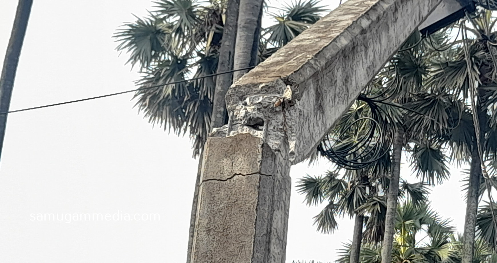 பலத்த காற்று வீசிய சமயம் சங்கானை 07 ஆம் கட்டைப் பகுதியிலுள்ள தனியார் காணியொன்றில் நின்ற பனை மரம் திடீரென முறிந்து வீழ்ந்துள்ளது.