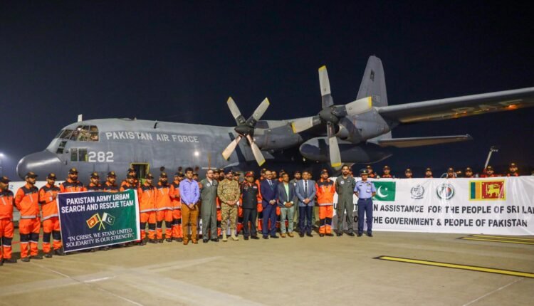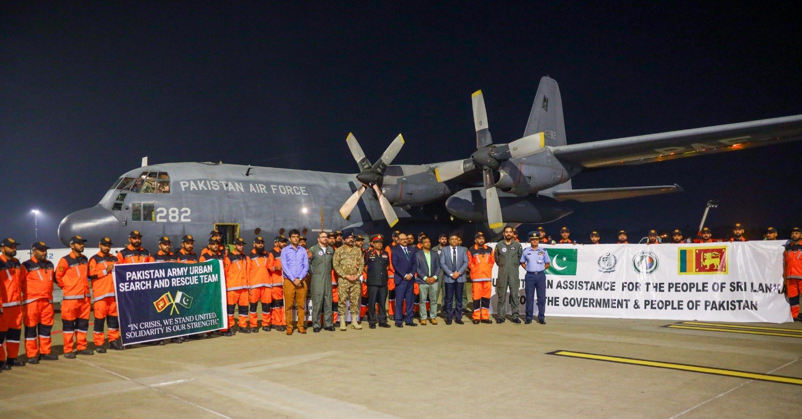 டித்வா சூறாவளியால் பாதிக்கப்பட்ட இந்நாட்டு மக்களின் நிவாரணப் பணிகளுக்கு ஆதரவளிக்கும் வகையில் பாகிஸ்தான் பிரதமர் முகமது ஷெபாஸ் ஷெரீபின் (Shehbaz Sharif) பணிப்புரையின் பேரில் பாகிஸ்தான் இராணுவத்தின் தேடல் மற்றும் மீட்புப் பிரிவைச் சேர்ந்த 47 உறுப்பினர்களும், 6.5 மெட்ரிக் டொன் அத்தியாவசிய உபகரணங்களும் இலங்கைக்கு அனுப்பப்பட்டுள்ளன.