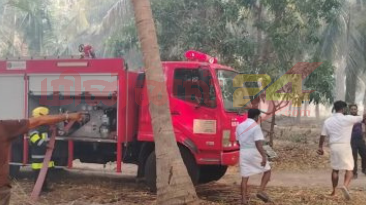 இந்த தீ சம்பவத்தில் பல தென்னை மரங்கள் தீயில் கருகி சேதமாகியுள்ளன.