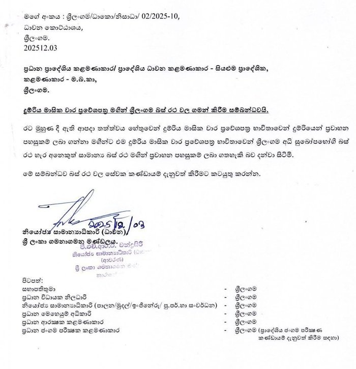 இது தொடர்பில் பேருந்து ஊழியர்கள் மற்றும் குழுவினருக்கு தெளிவுபடுத்தப்பட்டுள்ளதாக இலங்கை போக்குவரத்து சபை மேலும் குறிப்பிட்டுள்ளது.