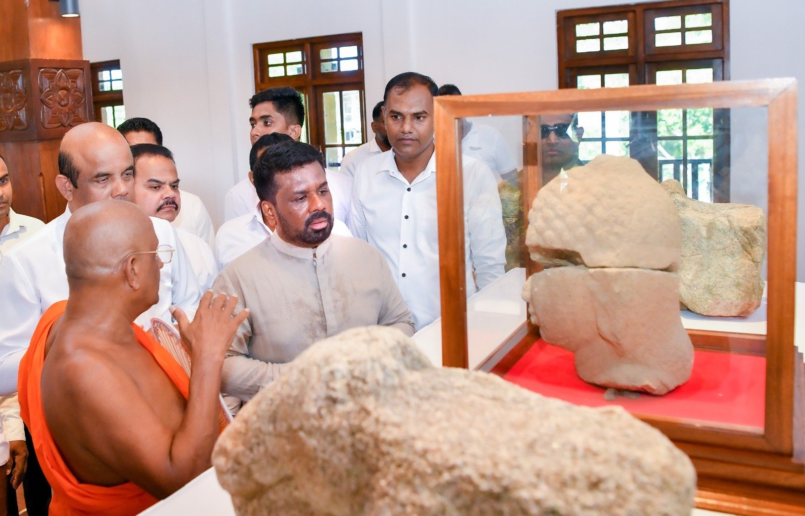 அதன் பின்னர் பெயர் பலகையை திறந்து வைத்து, தொல்பொருள் அருங்காட்சியகம் மற்றும் சர்வதேச தொல்பொருள் ஆராய்ச்சி நிறுவனம் அடங்கிய புதிய இரண்டு மாடி கட்டிடத்தை திறந்து வைத்த ஜனாதிபதி அங்கு வைக்கப்பட்டுள்ள புத்தர் சிலை மற்றும் தந்ததாதுவுக்கு மலர் வைத்து சமய வழிபாடுகளில் ஈடுபட்டார்.