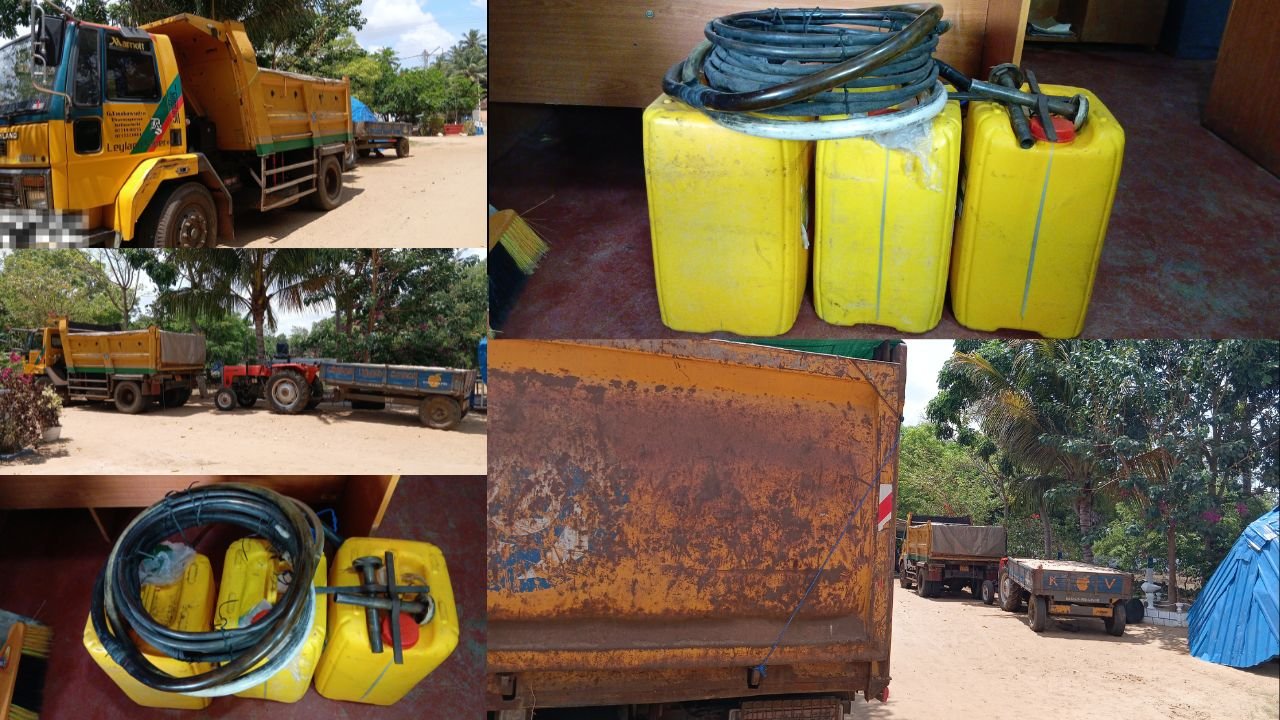 கிளிநொச்சி தர்மபுரம் பொலிஸ் பிரிவுக்குட்பட்ட கல்லாறு பகுதியில், கடந்த 24 மணி நேரத்தில், சட்ட விரோத செயற்பாடுகள் தொடர்பாக பொலிஸார் மேற்கொண்ட சோதனை நடவடிக்கையில், அனுமதி பத்திரம் இன்றி சட்டவிரோதமான முறையில் மணல் ஏற்றி பயணித்த டிப்பர் வாகனம் இரண்டு மணலுடன் பறிமுதல் செய்யப்பட்டுள்ளது.