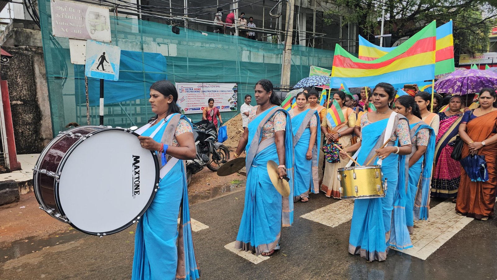 “பயங்கரவாத தடைச் சட்டத்தினை நீக்குக, பாலியல் குற்றங்களை துரிதமாக விசாரிக்க நடமாடும் நீதிமன்றங்களை உருவாக்குக, பெண் மனித உரிமை செயற்பாட்டாளர்களை அரச புலனாய்வாளர்கள் பின் தொடர்வது, தொலைபேசியில் அழைப்பது, புகைப்படம் எடுப்பது, விசாரணை செய்வதை உடன்நிறுத்துக” என்ற வாசகங்கள் எழுதிய பதாகையை தாங்கிய வாகனமும் பேரணியில் ஈடுபட்டது.
