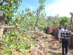 மேலும், நேற்று வியாழக்கிழமை இரவு முதல் வீசிய தொடர் காற்றினால் மரங்கள் முறிந்து, வீதிகளுக்கு குறுக்காக விழுந்து கிடப்பதையடுத்து, பிரதேச சபை ஊழியர்கள், மற்றும் இராணுவத்தினரின் உதவியுடன் அதனை அகற்றும் பணி முன்னெடுத்து வருகின்றமை குறிப்பிடத்தக்கது.