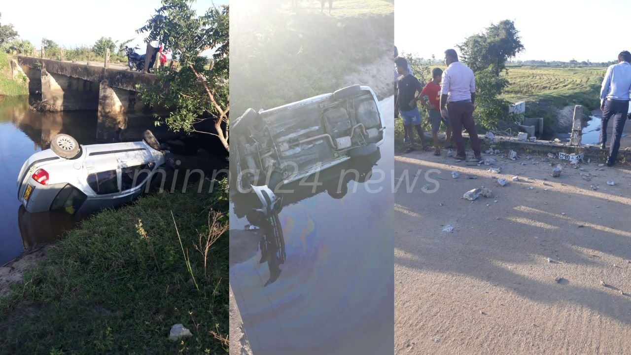 இன்று வியாழக்கிழமை பி.ப 5.45 மணியளவில் இடம்பெற்ற விபத்தின்போது, வேக கட்டுப்பாட்டை இழந்து கார், பாலத்தினை உடைத்து  கொண்டு  நீரோடையில் விழுந்துள்ளது.