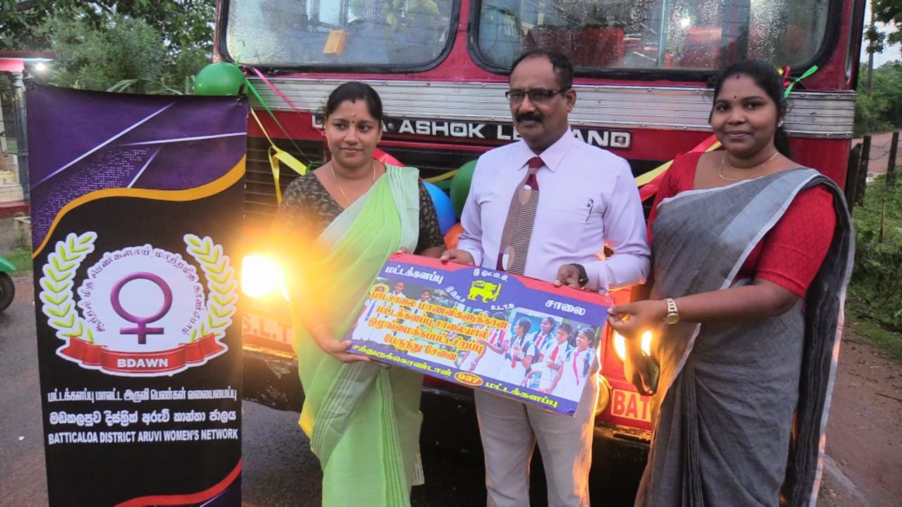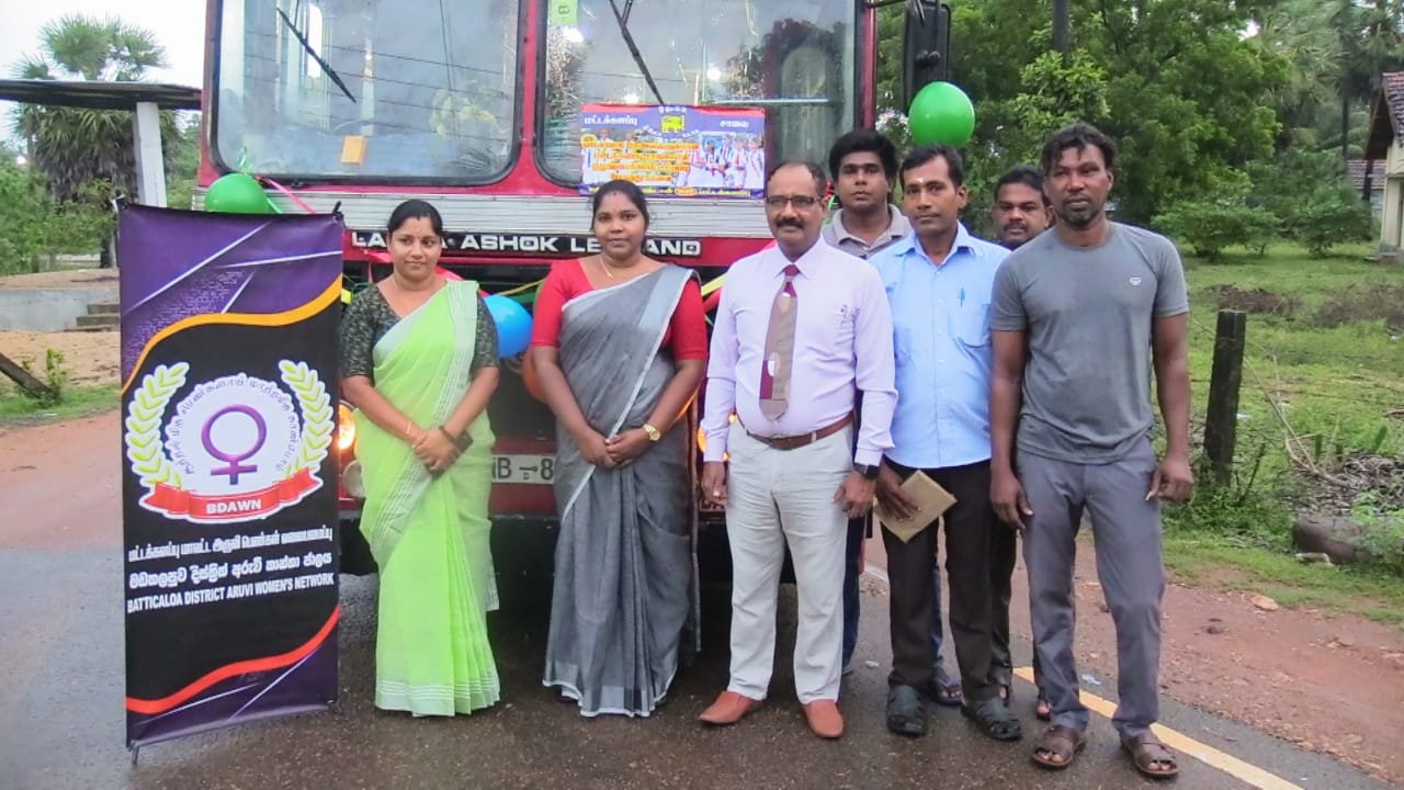 பாடசாலை செல்லும் மாணவிகள் பேருந்துகளில் செல்லும் போது இடம்பெறுகின்ற, பாலியல் தொல்லைகள் தொடர்பாக மட்டக்களப்பு அருவி பெண்கள் வலயமைப்புக்கு செய்யப்பட்ட முறைப்பாட்டுக்கு அமைய, மட்டக்களப்பு அருவி பெண்கள் வலயமைப்பின் பணிப்பாளரும் சட்டத்தரணியுமான மயூரி ஜனன் கவனத்திற்கு எடுத்து கொண்ட செயற்பாட்டின் கீழ், இலங்கை போக்குவரத்து சபையின் மட்டக்களப்பு பேருந்து சாலை அத்தியட்சகர் கந்தசாமி சிறிதரன் கவனத்திற்கு முன்வைக்கப்பட்ட கோரிக்கையின் அடிப்படையில், கல்முனை தலைமை காரியாலய பிரதான பிராந்திய முகாமையாளர் விஜித்த தர்மசேன அனுமதியுடன், இலங்கை போக்குவரத்து சபையின் மட்டக்களப்பு பேருந்து சாலையின், பாடசாலை மாணவிகள் மற்றும் பாடசாலை ஆசிரியர்களுக்கு, முதல் முறையாக பாதுகாப்பான போக்குவரத்து வழங்கும் பிரத்தியோக பேருந்து சேவை ஆரம்பிக்கப்பட்டுள்ளது.