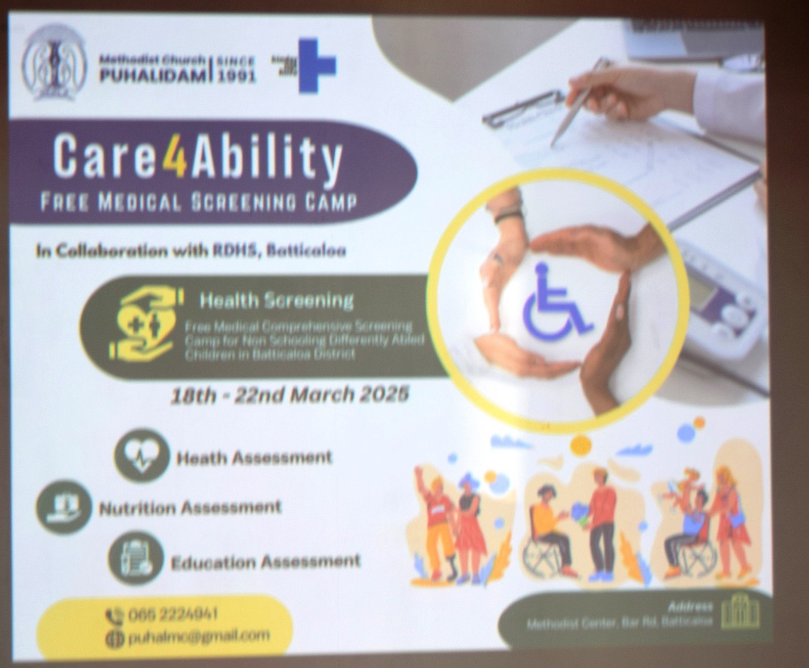 மெதடிஸ்த திருச்சபை புகலிடம், மட்டக்களப்பின் பிராந்திய சுகாதார சேவைகள் இயக்குநருடன் இணைந்து, கேஎன்எச் நிறுவனத்தின் நிதி அனுசரணையில் இவ்வாறான மாற்றுத்திறனாளிக் குழந்தைகளின் உடல் நலம், கல்வி, ஊட்டச்சத்து தேவைகளை மதிப்பிடுவதையும், அவர்களின் நல்வாழ்வுக்கும் மேம்பாட்டிற்குமான ஆதரவுத் திட்டங்களை உருவாக்குவதையும் இந்த முயற்சி நோக்கமாகக் கொண்டுள்ளது என புகலிடம் தன்னார்வத் தொண்டு அமைப்பின் பணிப்பாளர் அடிகளார் ஏ. சாமுவேல் சுபேந்திரன் தெரிவித்தார்.