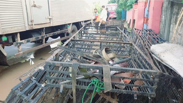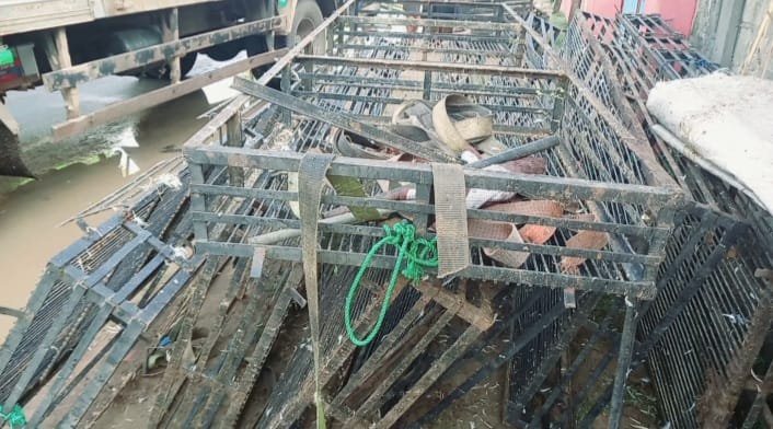 இந்த விபத்தில் சிக்கிய மாடு, சம்பவ இடத்தில் உயிரிழந்ததோடு, கோழிகளை ஏற்றிவந்த வாகனத்தில் பயணித்தோரும் காயமடைந்துள்ளனர்.