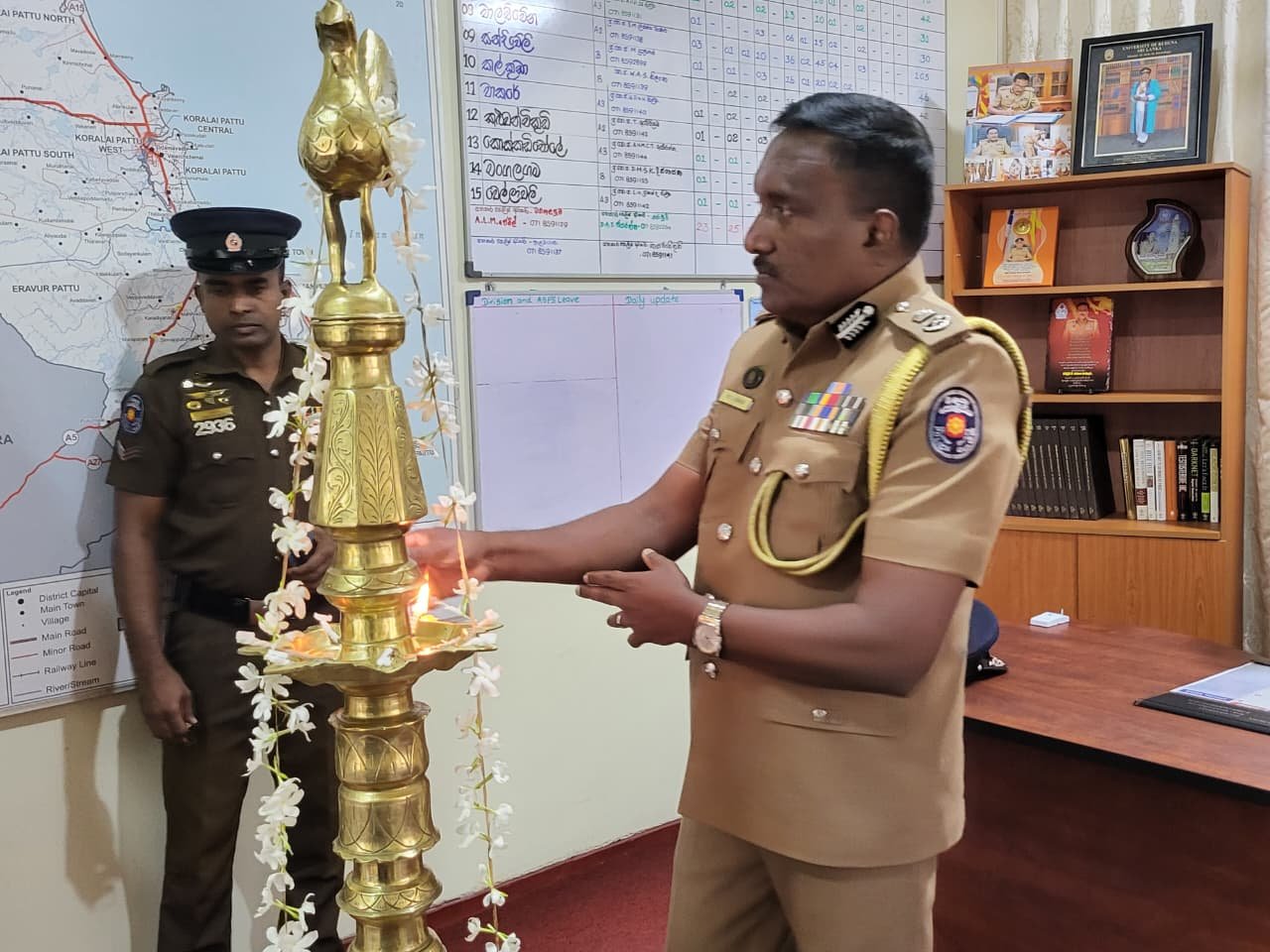 மட்டக்களப்பு மாவட்ட சிரேஷ்ட பொலிஸ் அத்தியட்சகர் லலித் லீலிரத்னவின் தலைமையில் இடம்பெற்ற இப்பதவி ஏற்பு நிகழ்வில், மாவட்டத்தின் பொலிஸ் நிலையங்களின் பொறுப்பதிகாரிகளும், மாவட்ட பொலிஸ் அதியட்சகர், உதவி பொலிஸ் அத்தியட்சகர், உட்பட மாவட்டத்தின் பிரதான பொலிஸ் அதிகாரிகளும் பங்கெடுத்திருந்தனர்.