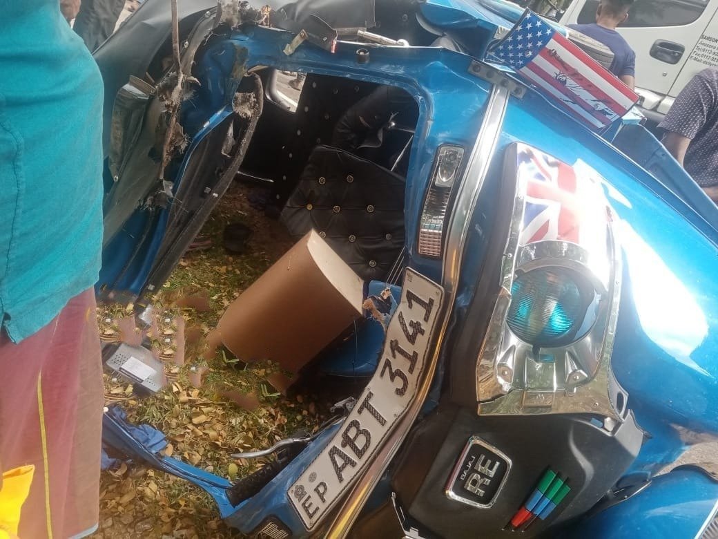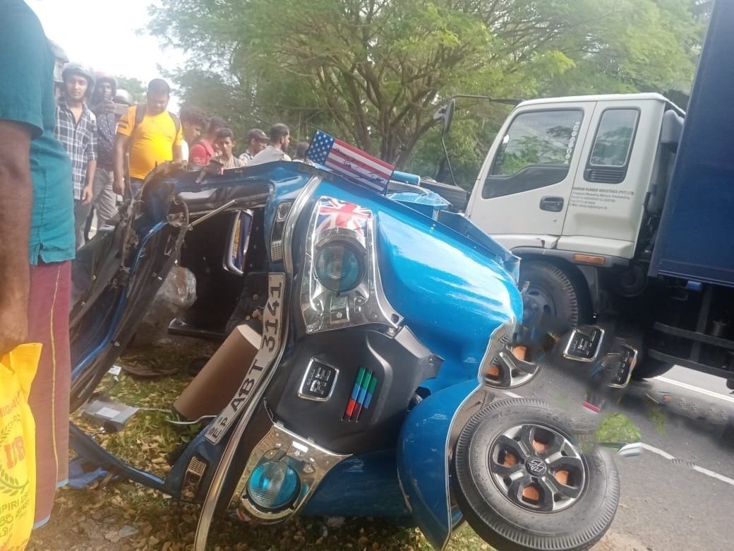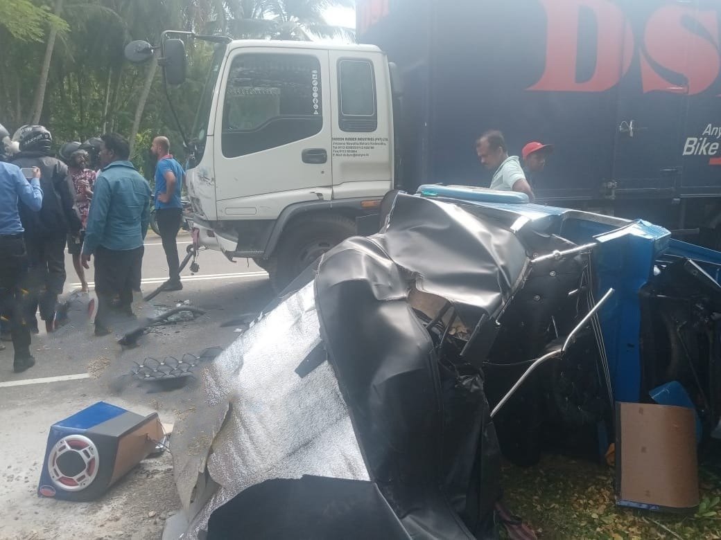 விபத்தில் முச்சக்கர வண்டியில் பயணித்த ஒருவர் சம்பவ இடத்தில் பலியானதுடன் மேலும் ஒருவர் பலத்த காயமடைந்துள்ளார்.