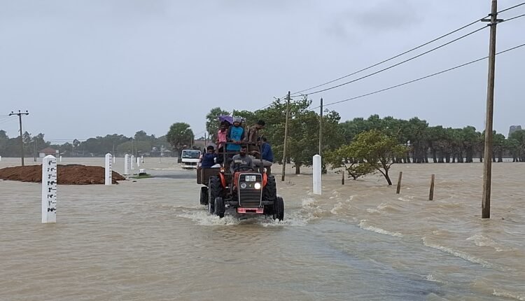 களுவாஞ்சிக்குடி வெல்லாவெளி பிரதான வீதியை ஊடறுத்து வெள்ள நீர் செல்வதனால் உழவு இயந்திரம் முலம் பொதுமக்கள் அச்சத்துடன் பயணம் செய்ய வேண்டிய நிலை ஏற்பட்டுள்ளது.