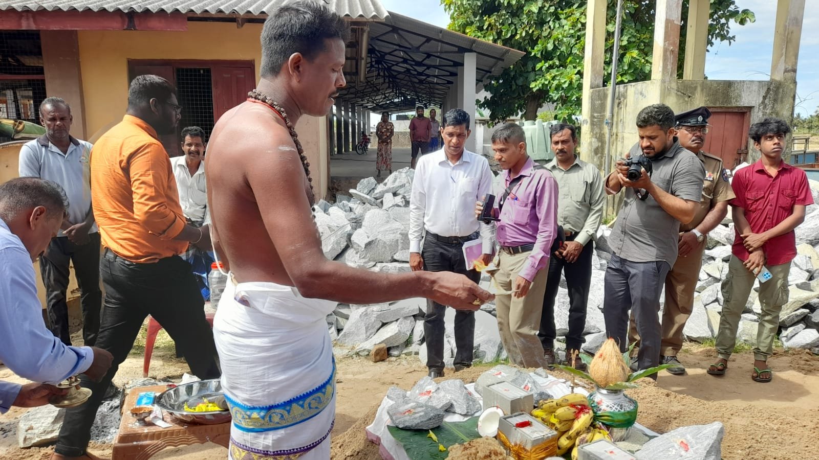பூஜைகள் இடம் பெற்று சுப நேரத்தில் புதிய சந்தைக்கான அடிக்கல் நாட்டு நிகழ்வு கலந்து கொண்ட அதிதிகளால் முன்னெடுக்கப்பட்டது