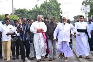 இதன் போது மன்னார் மறைமாவட்ட ஆயர் மேதகு எஸ்.ஞானப்பிரகாசம் ஆண்டகை கலந்து கொண்டதோடு,போராட்ட களத்தில் அங்கம் வகித்தவர்களும் கலந்து கொண்டிருந்தனர்.