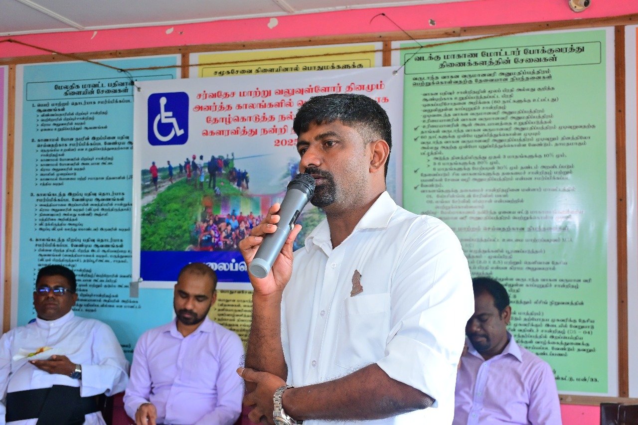 நாட்டில் ஏற்பட்ட புயல் மற்றும் வெள்ள அனர்த்தத்தின் போது மன்னார் மாவட்டம் மாந்தை மேற்கு பிரதேச செயலாளர் பிரிவில் பொது பணியில் ஈடுபட்ட இளைஞர்கள் கௌரவிக்கும் நிகழ்வு நேற்று செவ்வாய்க்கிழமை சர்வதேச மாற்றுத்திறனாளிகள் தினத்தையொட்டி இடம் பெற்றது.