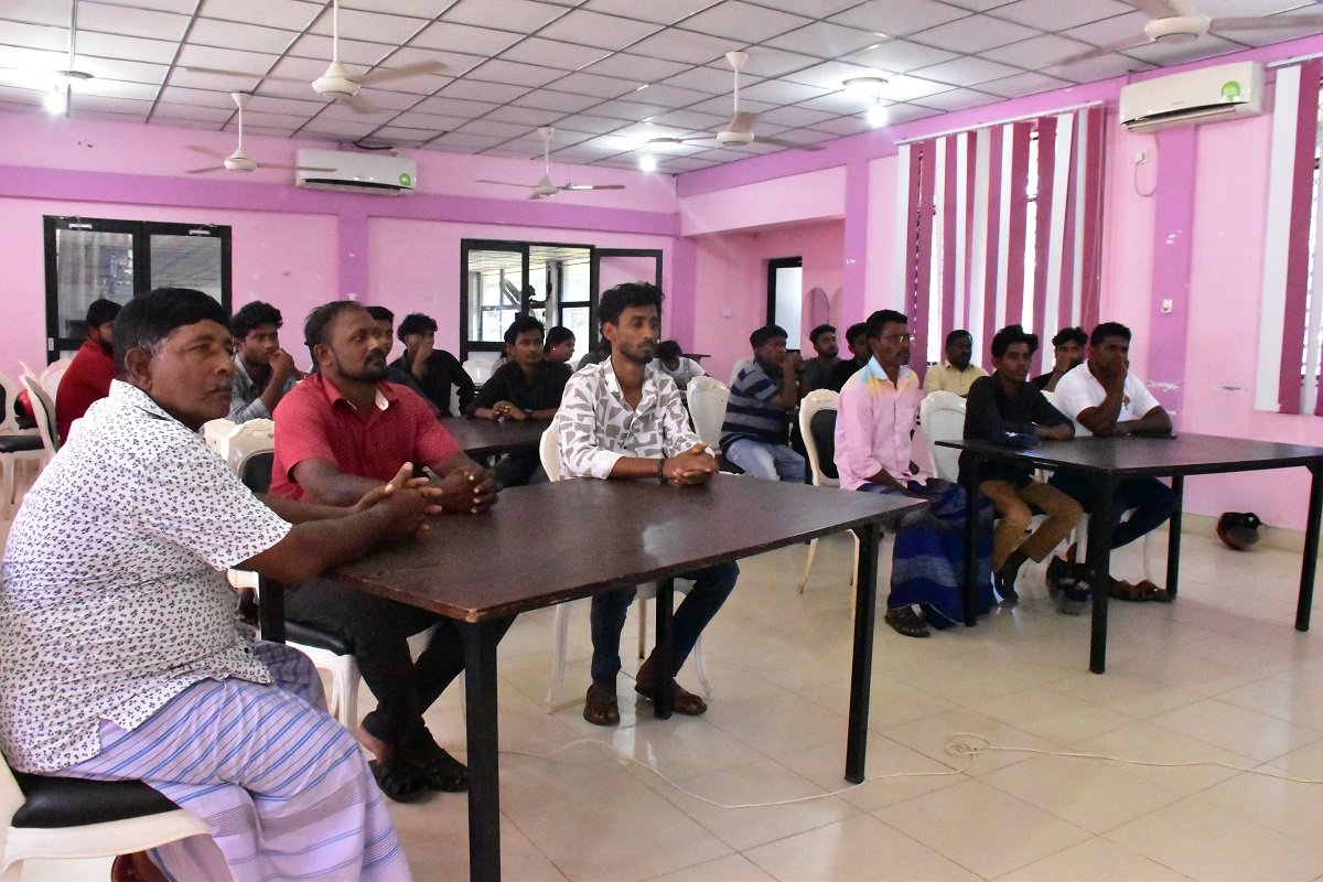 மன்னார் மாவட்ட கடற்றொழில் அலுவலர் இ.ரொபின் ஜூட் வளவாளராக கலந்து கொண்டு கடற்றொழில் மற்றும் நீர்வாழ் உயிரினங்கள் சார்ந்த சட்டங்கள், மீன்பிடிக்கு பயன்படுத்த தடை செய்யப்பட்ட உபகரணங்கள்,அனுமதியின்றி சங்குகள் வைத்திருத்தல், பிடிப்பதற்கு தடை செய்யப்பட்ட கடல் வாழ் உயிரினங்கள்,மற்றும் மீன்பிடிக்கான அனுமதிப் பத்திரங்கள் தொடர்பில் இளம் மீனவர்களுக்குத் தெளிவுப்படுத்தினார்.