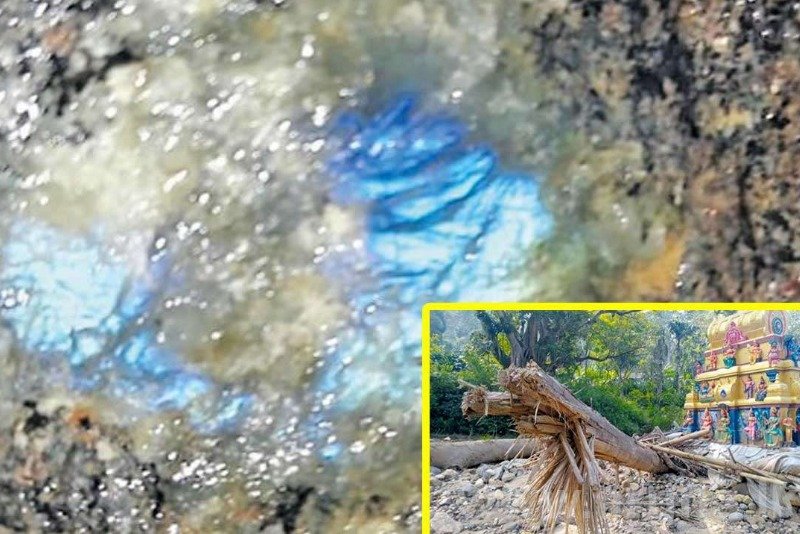அண்மையில் பேரிடரால் பாதிக்கப்பட்ட கண்டி மாவட்டம், கலஹா தெல்தோட்டை கள்ளந்தன்ன மேற்பிரிவில் உள்ள ஸ்ரீ முத்துமாரி அம்மன் ஆலயத்தில், நேற்று திங்கட்கிழமை வித்தியாசமான பிரகாசத்துடன் மிளிர்ந்த கற்பாறை கண்டுபிடிக்கப்பட்டுள்ளது