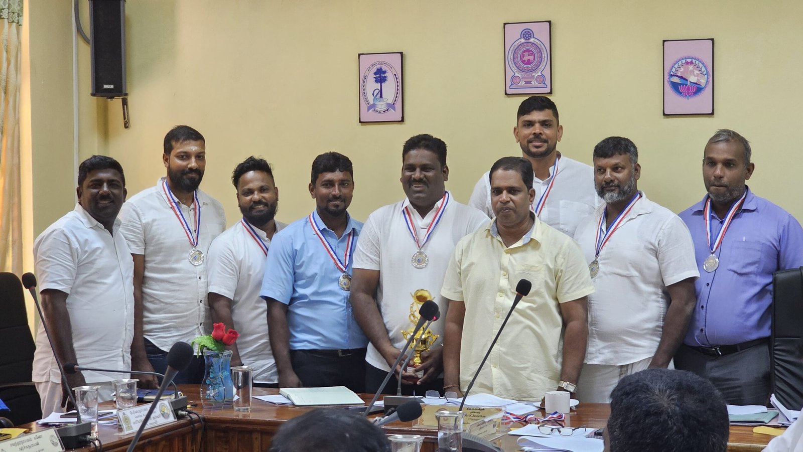 இதன்போது குறித்த அமர்வின்போது, கயிறு இழுத்தல் போட்டியில் பங்குபற்றிய உறுப்பினர்களிடம் வெற்றிக் கிண்ணத்தை கையளித்து, அவர்களுக்கான பதக்கங்களை அணிவித்து மானிப்பாய் பிரதேச சபையின் தவிசாளர் ஜெசீதன் கௌரவித்தார்.
