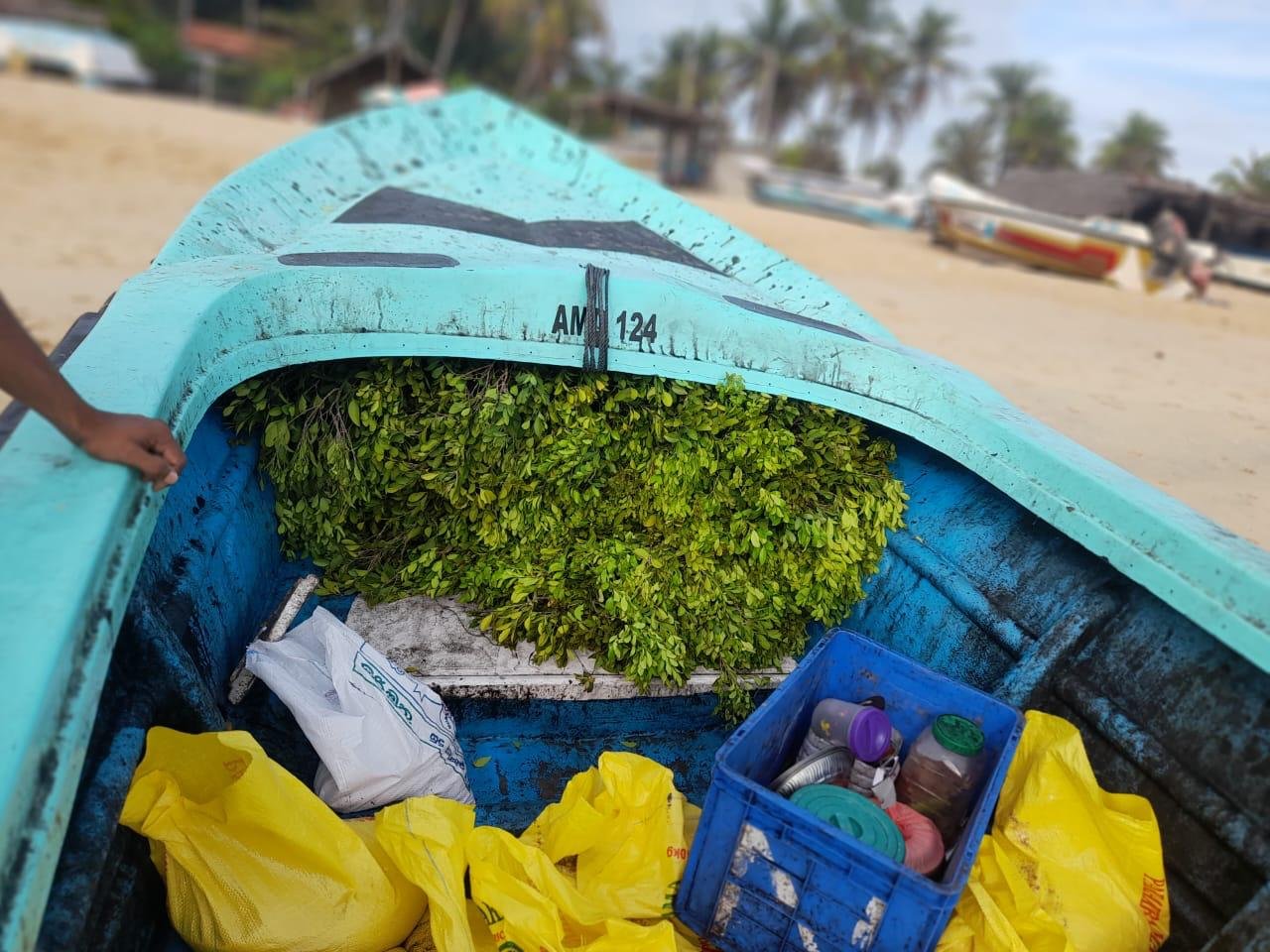 சட்டவிரோதமாக கணவாய் மீனை பிடிப்பதற்க்காக இலைகுழைகளை படகில் ஏற்றிச்சென்ற இருவரே இவ்வாறு கைது செய்யப்பட்டுள்ளனர்.