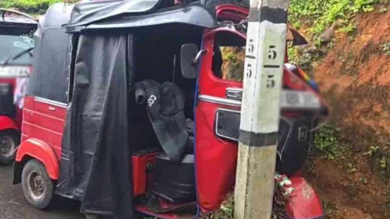 அதிக மழை காரணமாக வீதி வழுக்கல் தன்மையுடன் இருந்ததால், முச்சக்கர வண்டி ஒன்று சாரதியின் கட்டுப்பாட்டை இழந்து மின் கம்பத்துடன் மோதி இந்த விபத்து இடம்பெற்றுள்ளது.