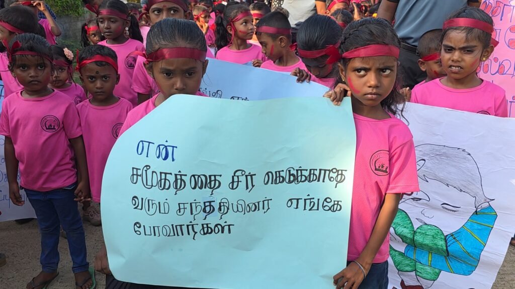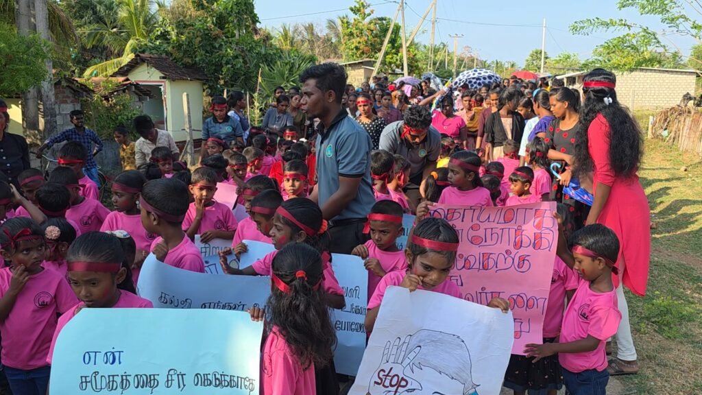 விழிப்புணர்வு ஊர்வலமானது பாட்டாளிபுரம் கிராம அபிவிருத்தி சங்க கட்டிட முன்றலிருந்து ஆரம்பமாகி எபிநேசர் சிறுவர் அபிவிருத்தி மையம் வரை இடம்பெற்றது.