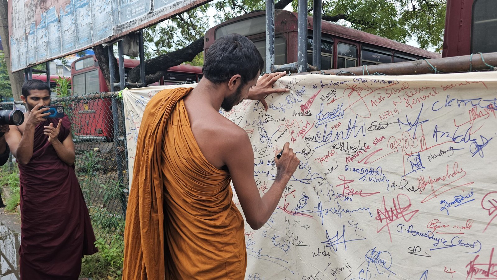 இதில் மக்கள் பேரவை இயக்கத்தின் உறுப்பினர்களான வசந்த முதலிகே, ராஜ்குமார் ரஜீவ்காந், அனைத்து பல்கலைக்கழக மாணவர் ஒன்றியத்தின் ஒருங்கிணைப்பாளர் மதுசன், பௌத்த தேரர்கள், சமூக செயற்பாட்டாளர்கள், சிவில் சமூகத்தினர்கள், மக்கள் பேரவை இயக்கத்தின் உறுப்பினர்கள் பலரும் கலந்துகொண்டனர்.