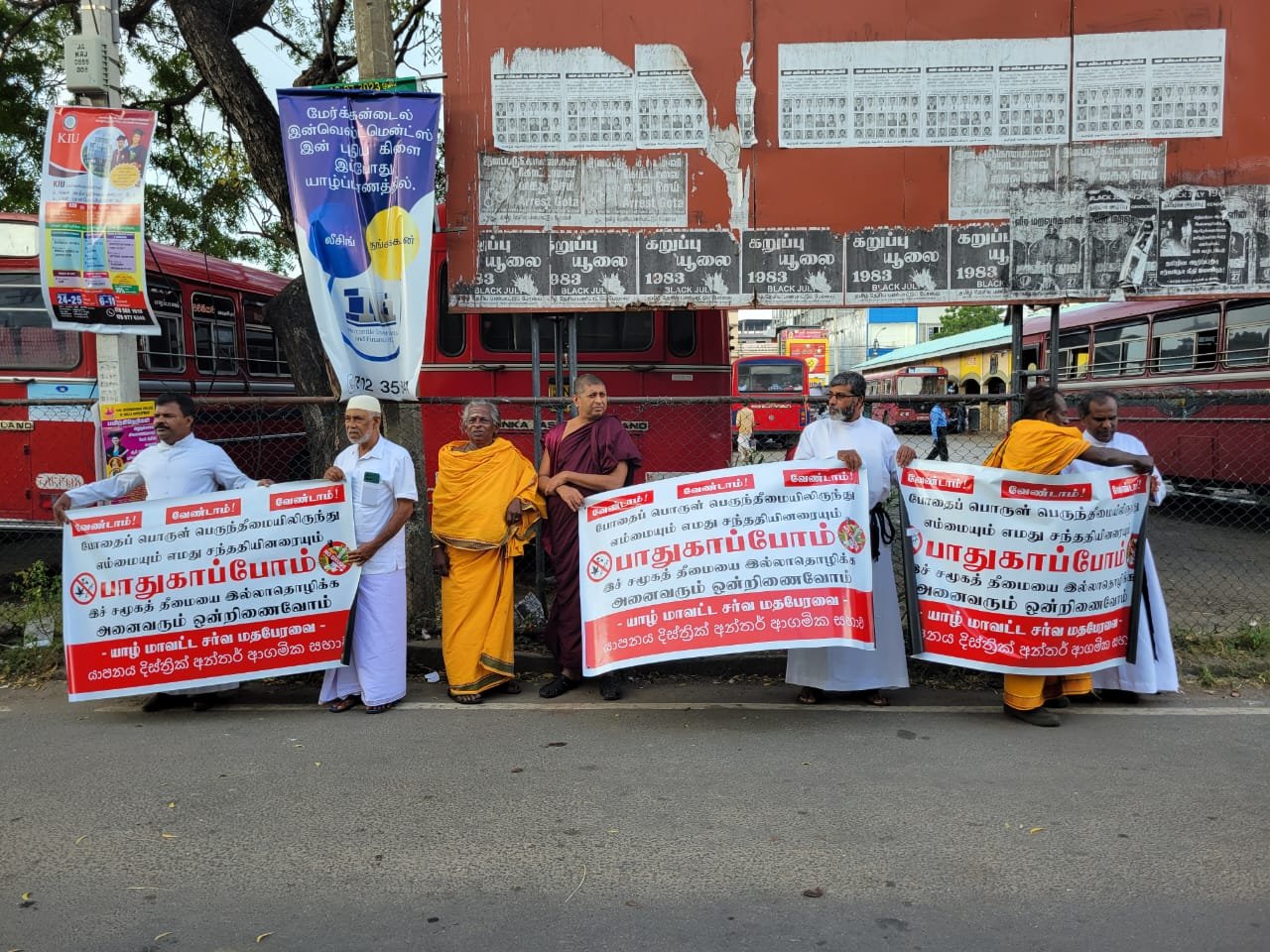 போராட்டத்தில் யாழ் மாவட்ட சர்வமத பேரவை தலைவர் சிவஸ்ரீ கிருபானந்த குருக்கள், செயலாளர் அருட்பணி இ.ராஜ்குமார், யாழ்ப்பாணம் நாக விகாரையின் விகாராதிபதி ஸ்ரீ விமல தேரர், மௌலவி வி.ஏ.எஸ்.சுபியான் உள்ளிட்ட சில மத தலைவர்கள் கலந்து கொண்டனர்.