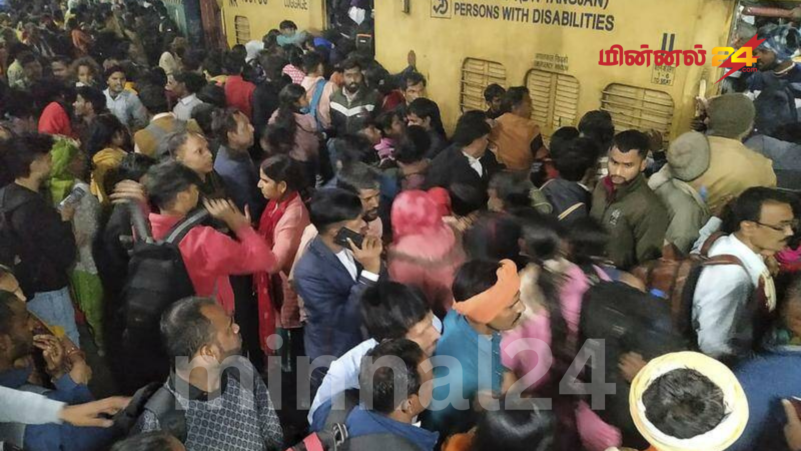 இந்நிலையில் ஸ்வதந்திரா சேனானி விரைவு ரயில் மற்றும் புவனேஷ்வர் ராஜ்தானி ரயில் ஆகியவை தாமதாக இயக்கப்படுவதாக ரயில் நிலையத்தில் அறிவிப்பு வெளியிடப்பட்டது. இந்த அறிவிப்பின் காரணமாக ரயில் நிலையத்தில் காத்திருந்த பயணிகள் பிரயாக்ராஜ் விரைவு ரயிலில் ஏற ஒரே நேரத்தில் முயற்சித்தனர்.