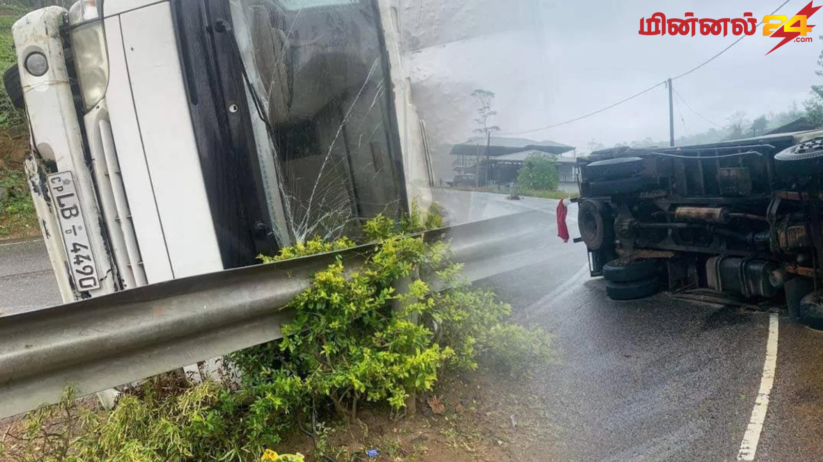 நுவரெலியாவில் தொடர்ந்து நிலவும் சீரற்ற வானிலையால் சாரதியின் கட்டுப்பாட்டைமீறி வாகனம் விபத்துக்குள்ளாகியிருக்கலாம் என சந்தேகிக்கப்படுகின்றது.