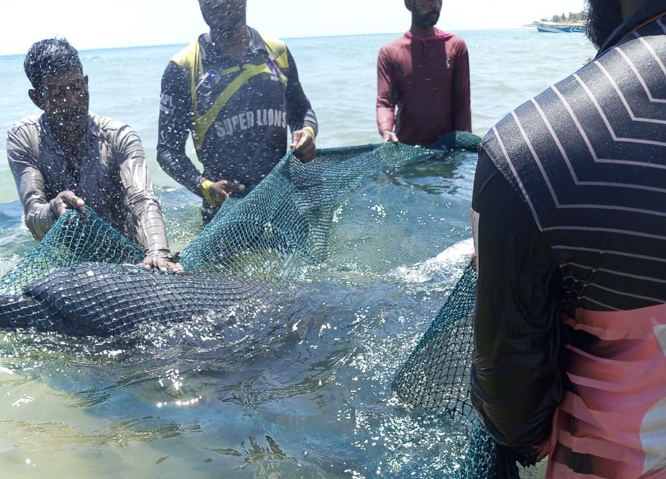 டொல்பின்களை உயிருடன் கடலுக்குள் அனுப்பி வைத்த மீனவர்களுக்கு பலரும் பாராட்டுக்களை தெரிவித்துவருகின்றனர்