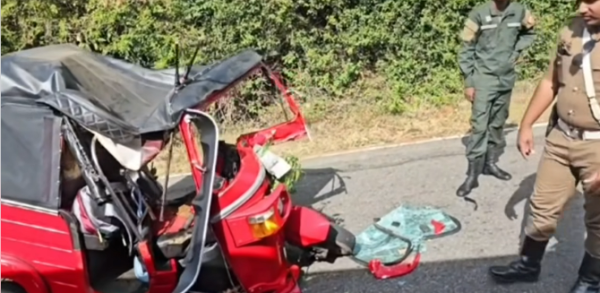 விபத்தின் போது முச்சக்கரவண்டியில் பயணித்த பாடசாலை மாணவன் சம்பவ இடத்திலேயே உயிரிழந்துள்ளதுடன், மேலும் நான்கு பேர் படுகாயமடைந்துள்ளனர்.