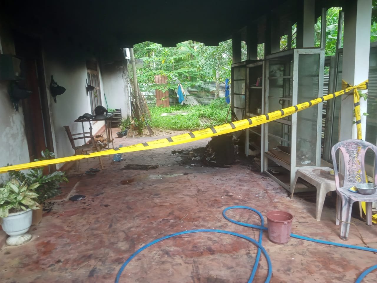 மோட்டார் சைக்கிளில் வந்த இனந்தெரியாத சிலர் வீட்டின் ஜன்னல்களை சேதப்படுத்திவிட்டு, வீட்டின் முன்னால் நிறுத்தி வைக்கப்பட்டிருந்த ரி.வி.எஸ் அப்பாச்சி மோட்டார் சைக்கிளுக்கு தீ வைத்து எரித்து விட்டு தப்பிச் சென்றுள்ளனர்.