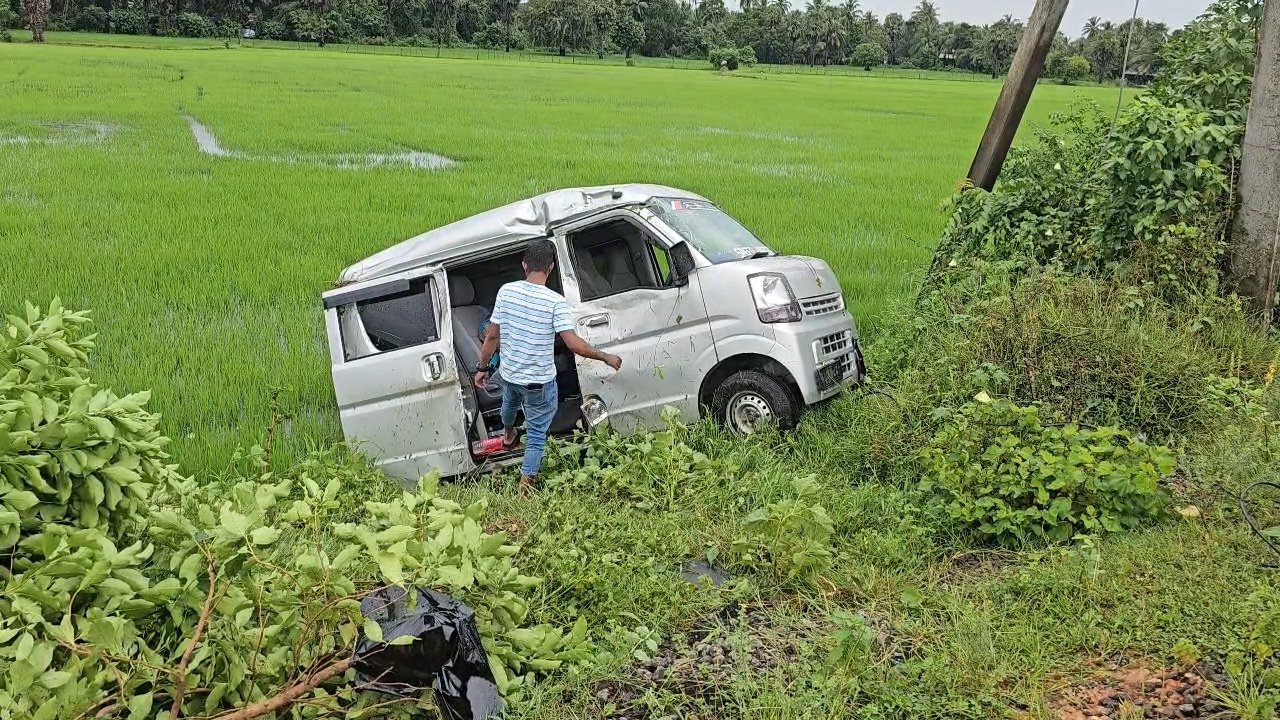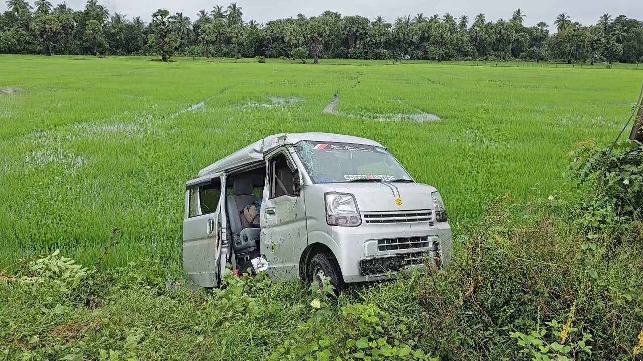 வீதியை விட்டு விலகி வயலில் பாய்ந்து விபத்துக்குள்ளாகிய வாகனம்!