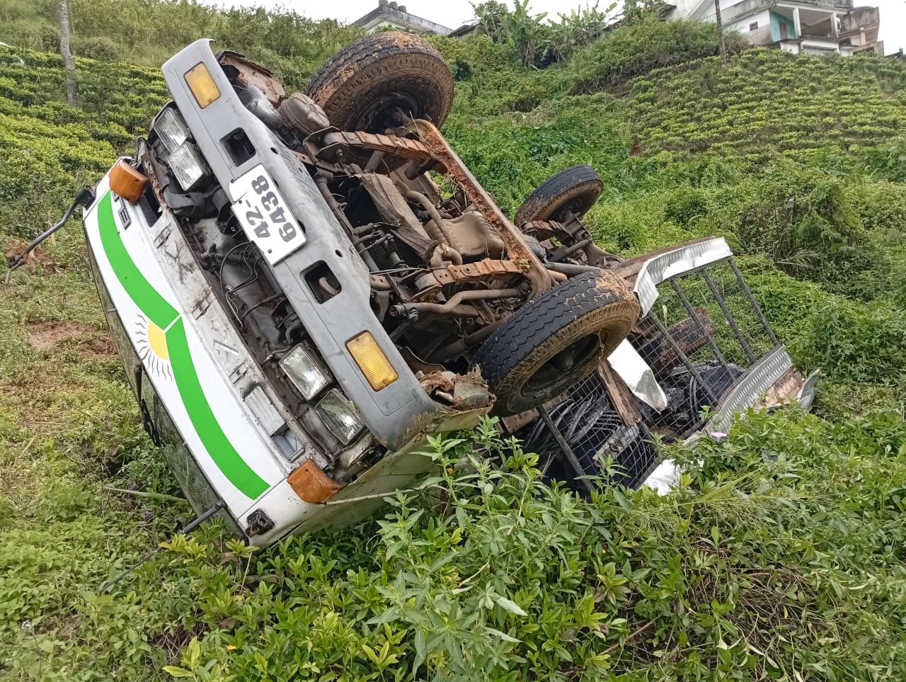 அரியகம பகுதியில் நடந்த இறுதிச் சடங்கு ஒன்றுக்காக பொருட்களை ஏற்றிச் சென்ற பார ஊர்தி, மீண்டும் ஹட்டன் நகரத்திற்க்கு திரும்பிக் கொண்டிருந்தபோது, மழை காரணமாக சறுக்கி தேயிலைத் தோட்டத்தில் கவிழ்ந்தது.