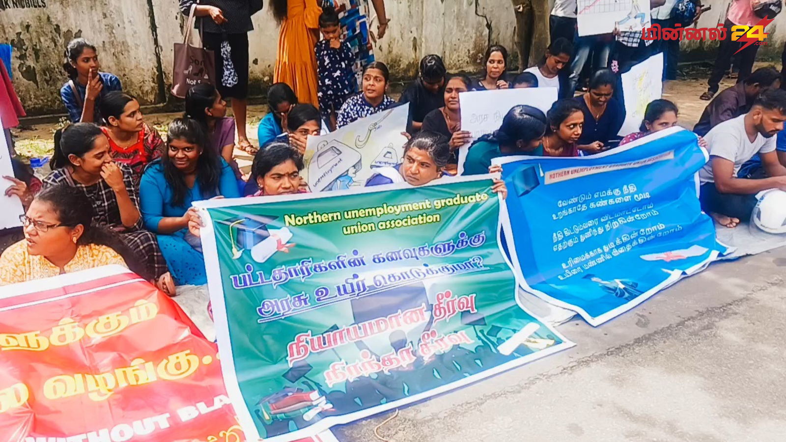 வேலையில்லா பட்டதாரிகள் யாழ்ப்பாணத்தில் போராட்டம்