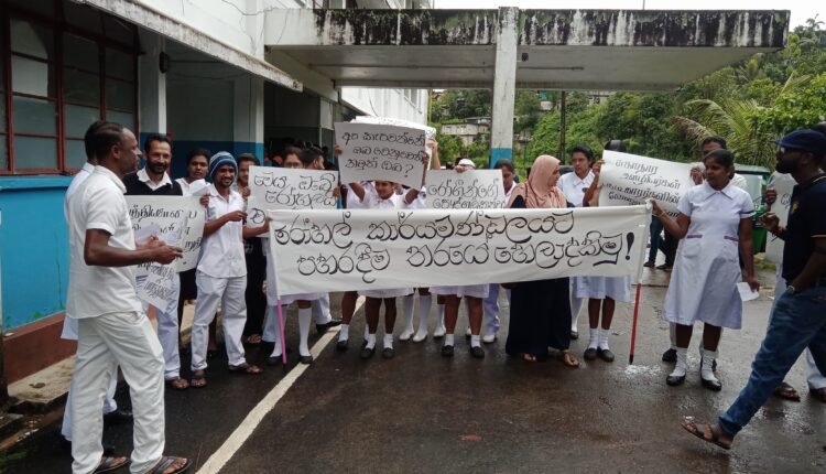 மஸ்கெலியா பிரதேச வைத்தியசாலையில் மாவட்ட வைத்திய அதிகாரி எஸ் பாஹிமா தலைமையில் அங்கு பணி புரியும் அனைத்து உத்தியோகத்தர்களும் இணைந்து 30 நிமிடங்கள் இன்று சனிக்கிழமை காலை 10 மணிக்கு அமைதி போராட்டம் நடத்தினர்.