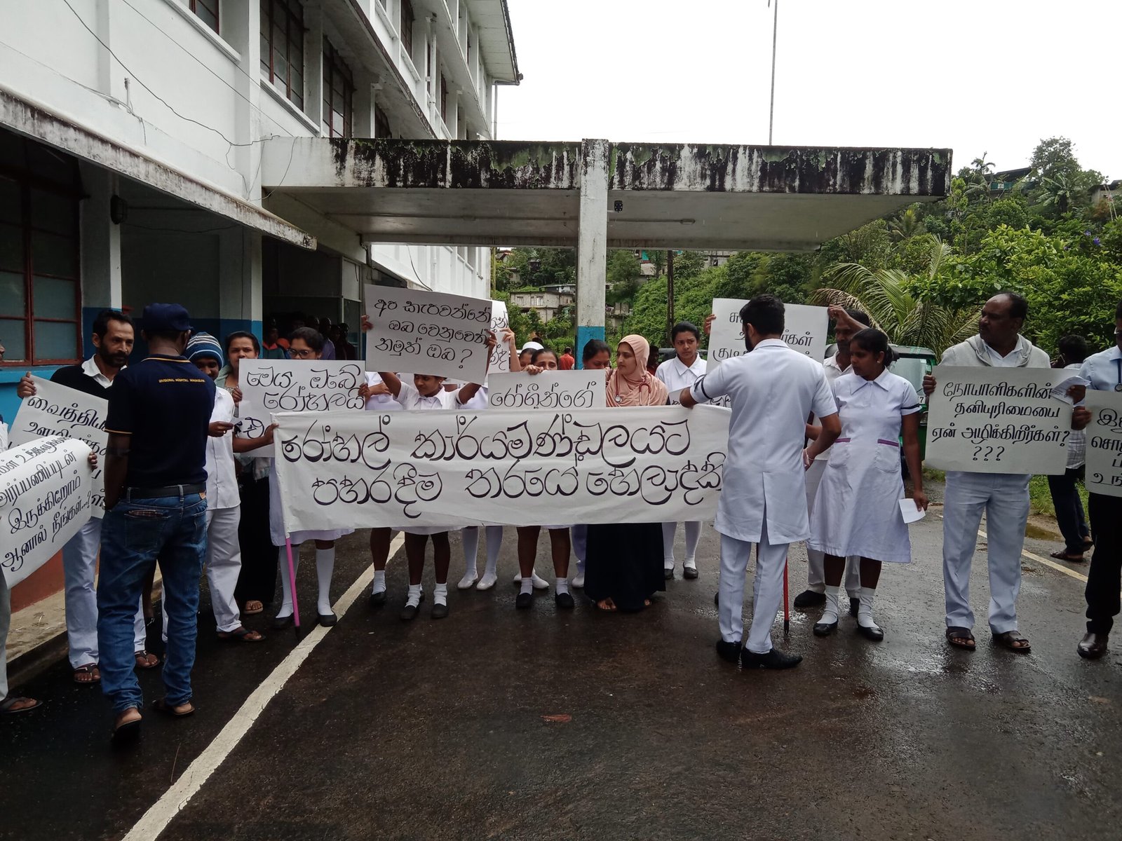 மஸ்கெலியா பிரதேச வைத்தியசாலையில் மாவட்ட வைத்திய அதிகாரி எஸ் பாஹிமா தலைமையில் அங்கு பணி புரியும் அனைத்து உத்தியோகத்தர்களும் இணைந்து 30 நிமிடங்கள் இன்று சனிக்கிழமை காலை 10 மணிக்கு அமைதி போராட்டம் நடத்தினர்.