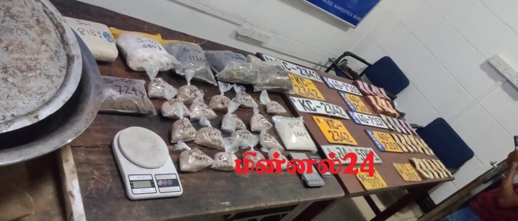 இவ்வாறு கைதான சந்தேக நபரிடம் இருந்து 8 கிலோ 168 கிராம் ஹெரோயின், 666 கிராம் ஐஸ் போதைப் பொருள், ரூபாய் 8 இலட்சத்தி 23 ஆயிரம் (823,000.00) பணம், மின்னணு தராசு 03, கையடக்கத் தொலைபேசி 04, வாகன போலி எண் தகடுகள் 06, ஒரு கார், ஒரு வேன், ஒரு முச்சக்கர வண்டி மற்றும் இரண்டு மோட்டார் சைக்கிள்களும் மீட்கப்பட்டிருந்ததுடன், சந்தேக நபர்கள் உள்ளிட்ட சான்றுப்பொருட்களை சட்ட நடவடிக்கைக்காக பி.என்.பீ. எனப்படும் பொலிஸ் போதைப் பொருள் தடுப்பு பிரிவினரிடம் ஒப்படைக்கப்பட்டுள்ளன.
