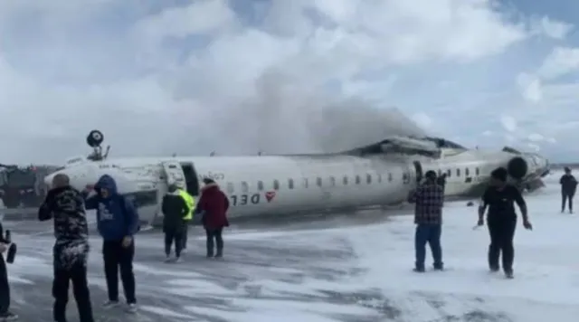 கனடாவின் டொராண்டோ பியர்சன் சர்வதேச விமான நிலையத்தில் 80 பேருடன் பயணித்த விமானம் தரையிறங்கும் போது கவிழ்ந்து விபத்துக்குள்ளாகியுள்ளது.