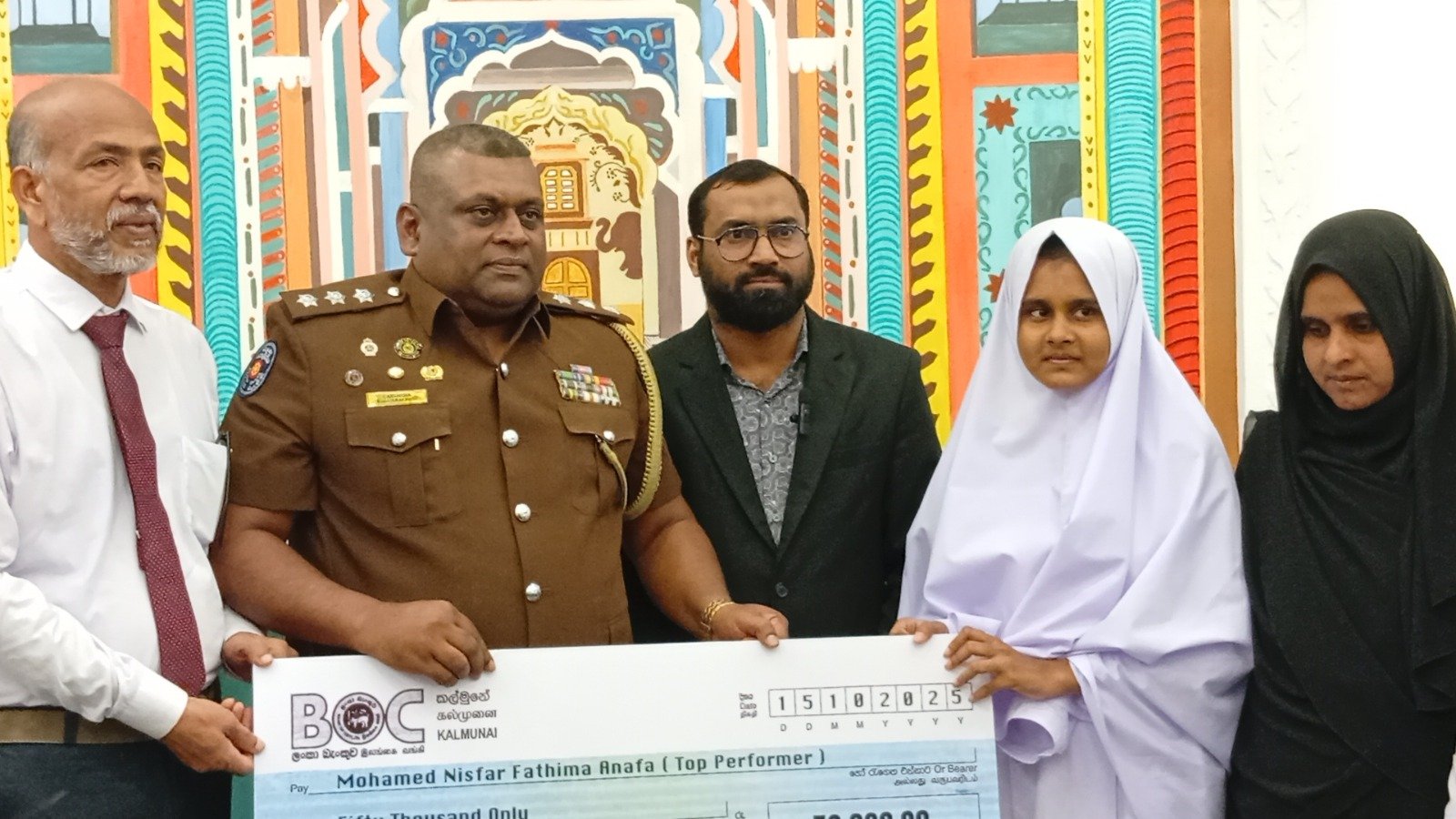 9 ஏ சித்தி பெற்று 94 வருடங்களின் பின்னர் சாதனை நிலை நாட்டிய முகம்மட் நிஸ்பர் பாத்திமா அனபா என்ற மாணவிக்கு பிரபல சமூக சேவகரும் இளம் தொழிலதிபருமான மஹ்மூத் மாஜித் 50 ஆயிரம் ரூபா பெறுமதியான காசோலையை வழங்கி கெளரவித்தார்.