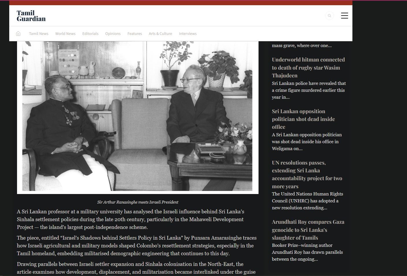 20ஆம் நூற்றாண்டின் பிற்பகுதியில் இலங்கையின் சிங்கள குடியேற்றக் கொள்கைகளுக்குப் பின்னால் உள்ள இஸ்ரேலிய செல்வாக்கு குறித்து இலங்கையின் பேராசியர் ஒருவர் ஆய்வு செய்துள்ளதாக சர்வதேச ஊடகம் ஒன்று செய்தி வெளியிட்டுள்ளது.