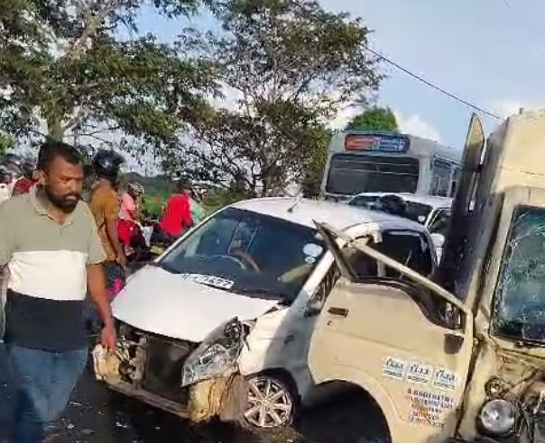 இவ்விபத்தில் மூன்று வாகனங்கள் பாரிய சேதமடைந்துள்ளதுடன் இவ்விபத்தில் குழந்தை உட்பட பலர் பலத்த காயமடைந்துள்ளனர்.