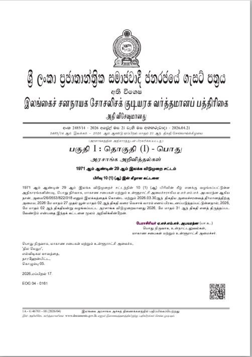 இதற்கமைய, முன்னதாக மே மாதம் 2ஆம் திகதி வழங்கப்படவிருந்த விடுமுறையைத் திருத்தம் செய்து இந்த வர்த்தமானி வெளியிடப்பட்டுள்ளது.