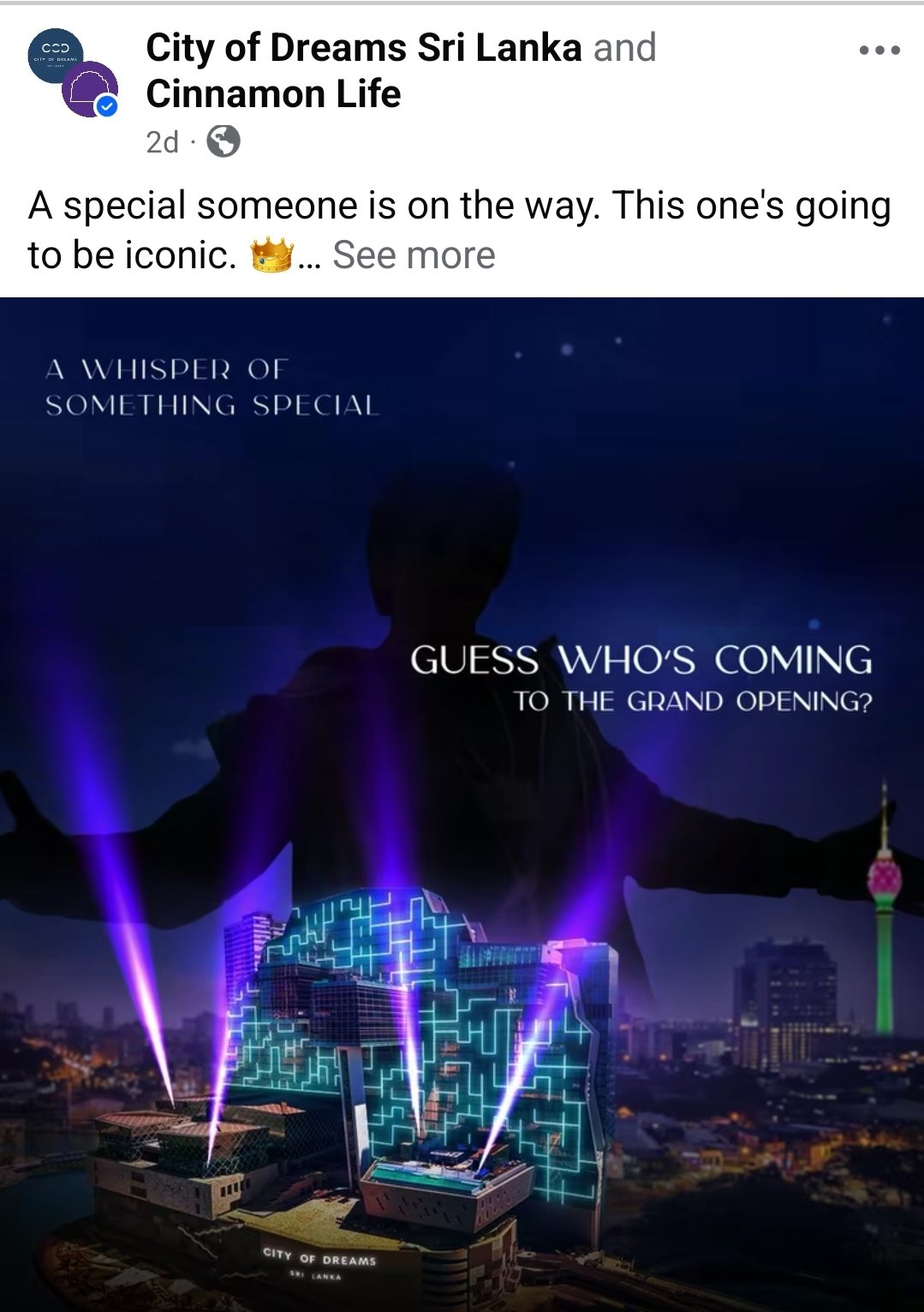 நிகழ்ச்சி ஒன்றில் கலந்து கொள்வதற்காக அவர் இலங்கை வருவதாக தெரிவிக்கப்படுகிறது.