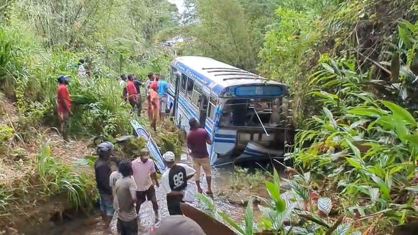 பயணித்துக் கொண்டிருந்த பேருந்து, எதிரே வந்த மற்றொரு பேருந்துக்கு இடமளிக்க முற்பட்ட போதே வீதியை விட்டு விலகி பள்ளத்தில் சரிந்து விபத்துக்குள்ளானது.