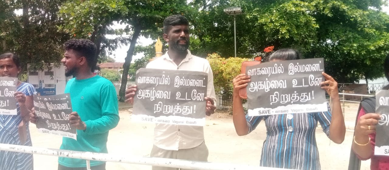 இதன் போது ஆர்ப்பாட்டகாரர்கள்இ வாகரையில் இல்மனைட் அகழ்வை உடனே நிறுத்து, என்ற வாசகம் எழுதிய பதாதைகளை ஏந்திய வண்ணம் ஆர்ப்பாட்டத்தில் ஈடுபட்டனர்.