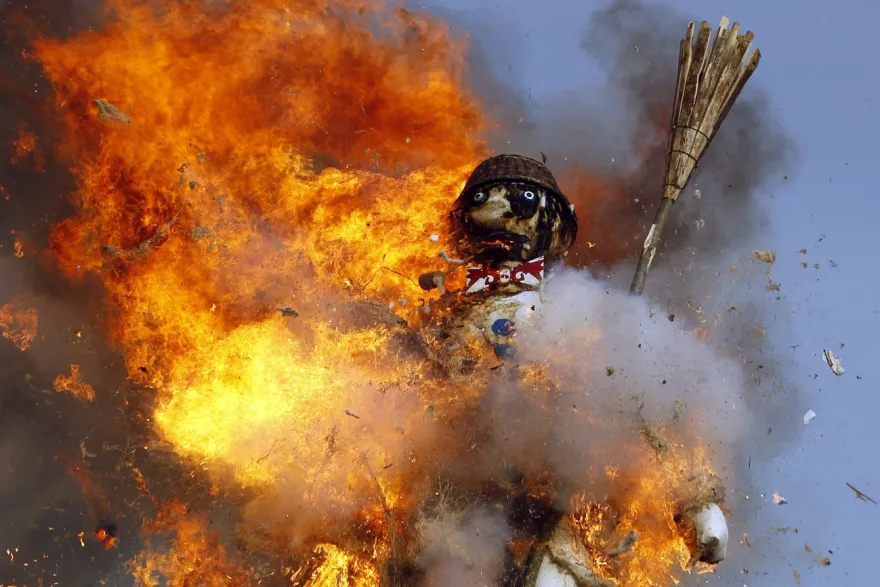 சூரியன் பிரகாசித்துக் கொண்டிருந்தது. காற்று மென்மையாக வீசி கொண்டிருந்தது. மாகாணத்தின் தலைவர் மரக்கட்டைகளுக்கு தீமூட்டிய 10 நிமிடங்களுக்குப் பிறகு, பட்டாசுகள் வெடித்தன. தீப்பிழம்புகள் மேலே எழுந்து, பனி மனிதன் மீது படர்ந்து நெருப்பு வேகமாக வானுயர எழுந்து எரிந்தது.