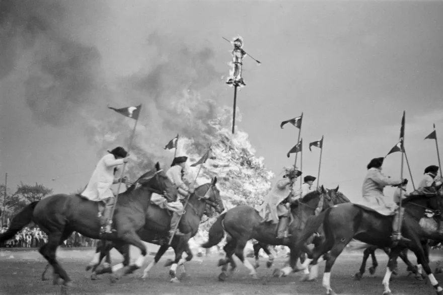 நெருப்பு மேலெந்து எரிந்து, பனிமனிதன் வெடித்து சிதறும் வரை குதிரை வீரர்கள் எரியும் பனிமனிதனை சுற்றி வலம் வந்தபடி இருப்பார்கள்.